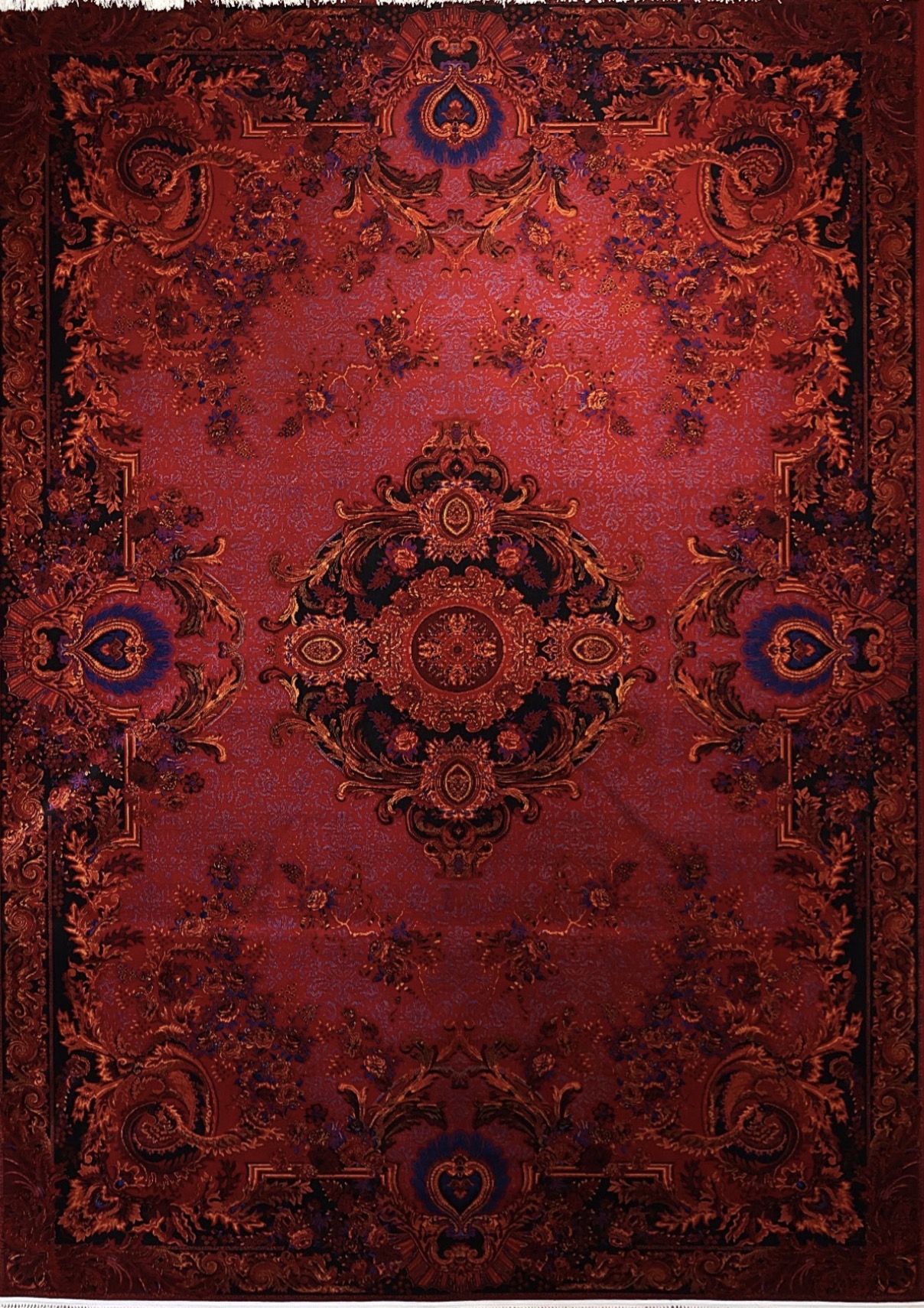 فرش ۷۰۰ شانه 12 متری کاشان رنگ سرمه ای طرح شاهانه khan