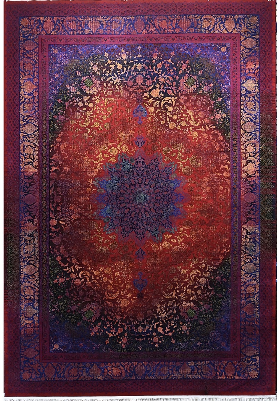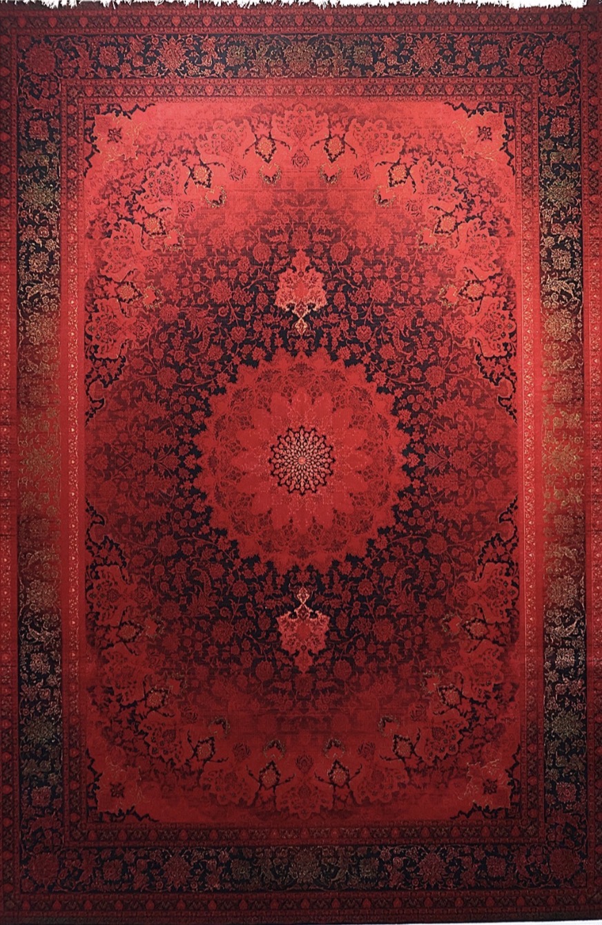 فرش ۷۰۰ شانه 12 متری کاشان لاکی ارغوانی طرح والیا khan