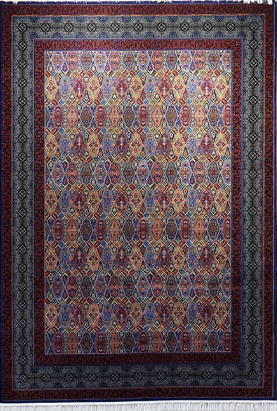 فرش ۷۰۰ شانه ۹ متری کاشان رنگ سرمه ای طرح افشان رها khan