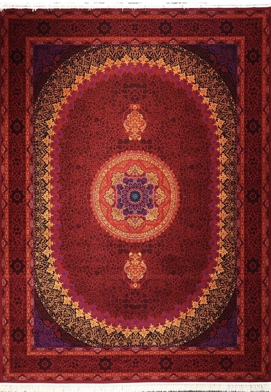 فرش ۷۰۰ شانه ۶ متری کاشان لاکی ارغوانی طرح مولوی khan