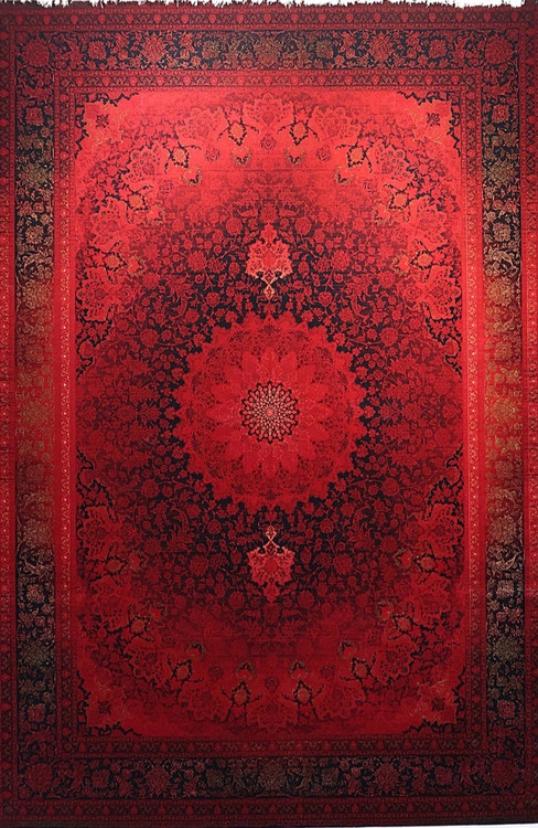 فرش ۷۰۰ شانه ۶ متری کاشان لاکی ارغوانی طرح اطلسی khan