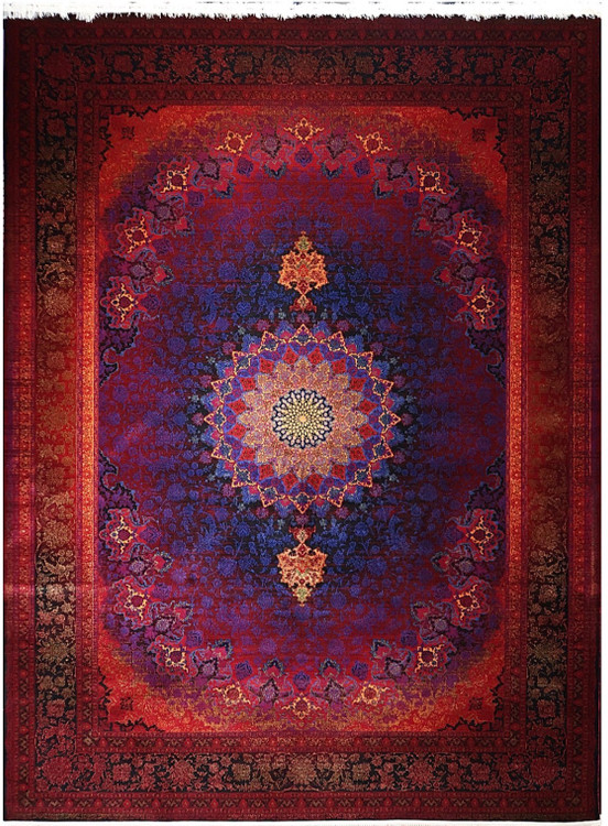 فرش ۷۰۰ شانه ۹ متری کاشان لاکی ارغوانی طرح خورشید khan