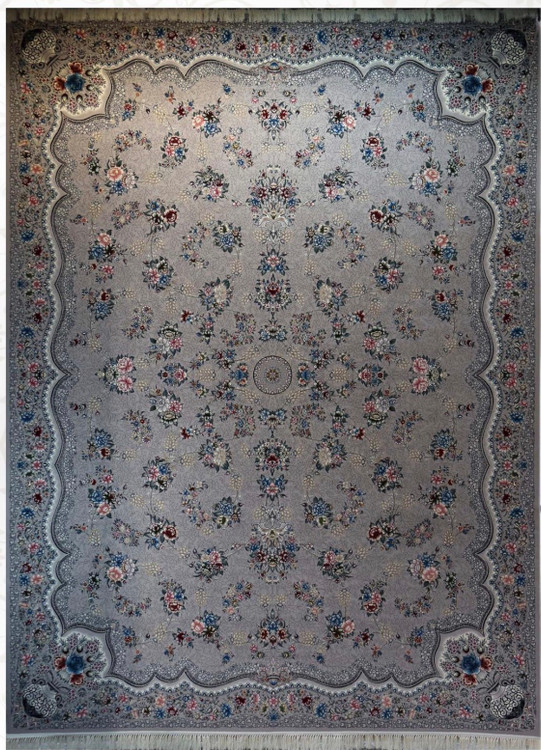 فرش ۷۰۰ شانه 12 متری کاشان رنگ نقره ای طرح افشان رها khan